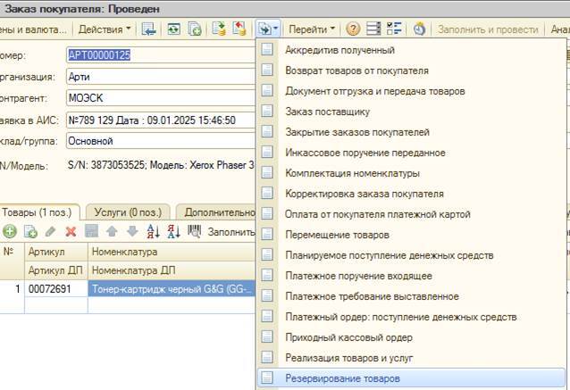 - Вся номенклатура в заказе покупателя содержит признак «Проверенная позиция»;